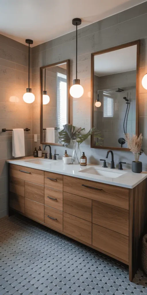 If you love natural materials and vintage looks, a rustic or farmhouse bathroom is for you. These styles make your bathroom warm and inviting, like a cozy retreat.