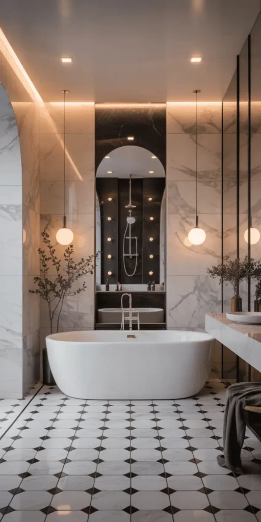 - Luxury materials: High-end materials like marble, quartz, and porcelain add sophistication.