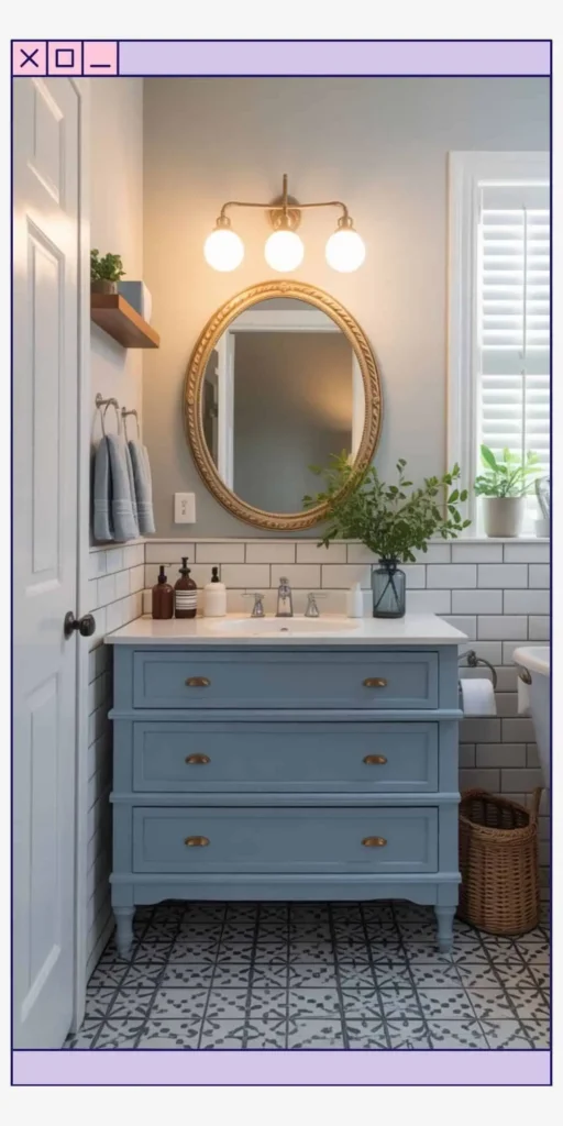 Adding vintage-inspired elements brings character to your bathroom. Think about antique or reproduction fixtures, like vintage-style faucets and ornate mirrors. Vintage-inspired accessories like distressed wood shelves or antique-inspired lighting can complete the look.