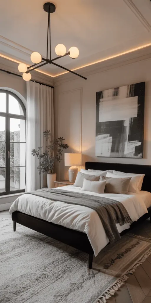 - Hang pendant lights above the bed for a modern look—ideal with platform-style frames.