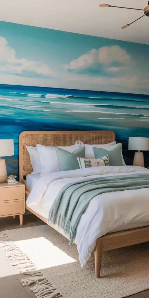 Subtle patterns bring life without feeling crowded. Textures like grasscloth (think Hygge & West’s linen-look designs) add a natural feel. For a coastal look, go for abstract wave patterns in soft blues.