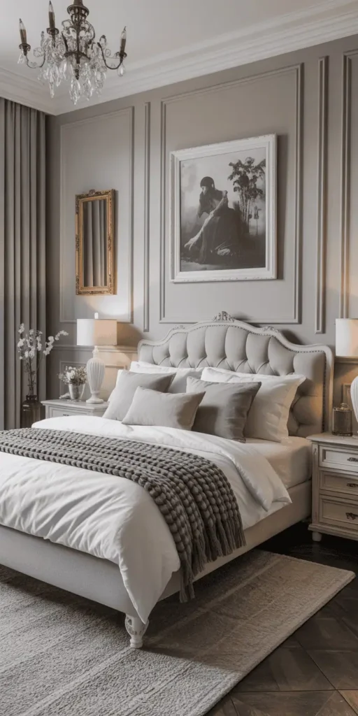 Frette linens or Pottery Barn textiles add sophistication without color overload. Metallic accents like gold or chrome add shine without breaking the palette.