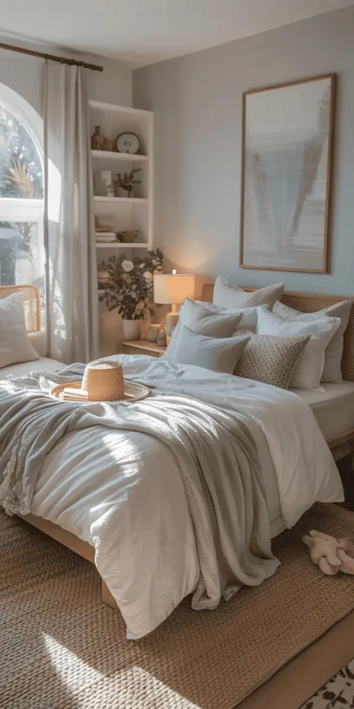 Turn your bedroom into a peaceful coastal haven with the right accessories. Adding a beachy feel to your bedroom is easy with the right decor. It brings the ocean’s calm into your space.