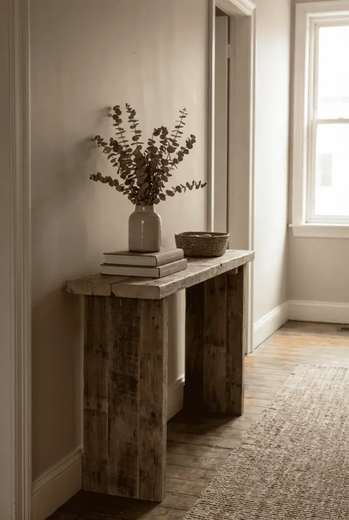 Once built, console tables become a styling anchor. A lamp, a mirror, a basket underneath — suddenly the space feels intentional instead of forgotten.
