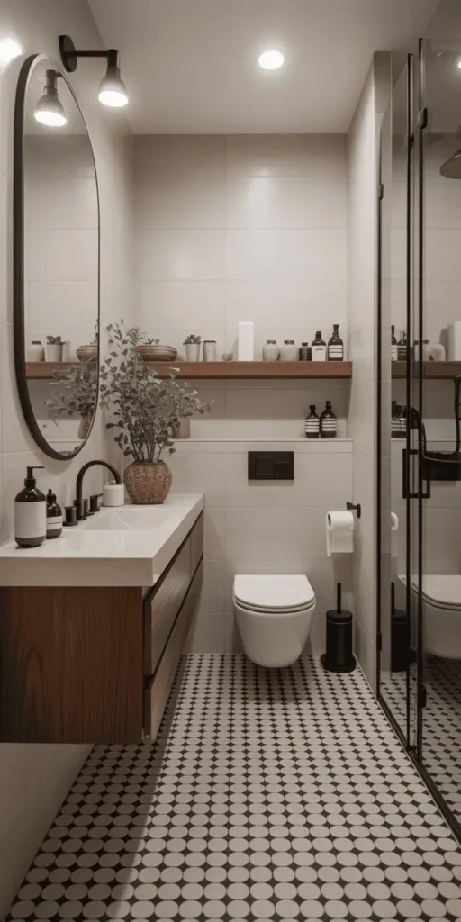 Choosing the right fixtures is key to enhance small bathroom space efficiency. Consider a wall-mounted sink or a pedestal sink to free up floor space. A compact toilet or a wall-hung toilet can also make the room feel more open.