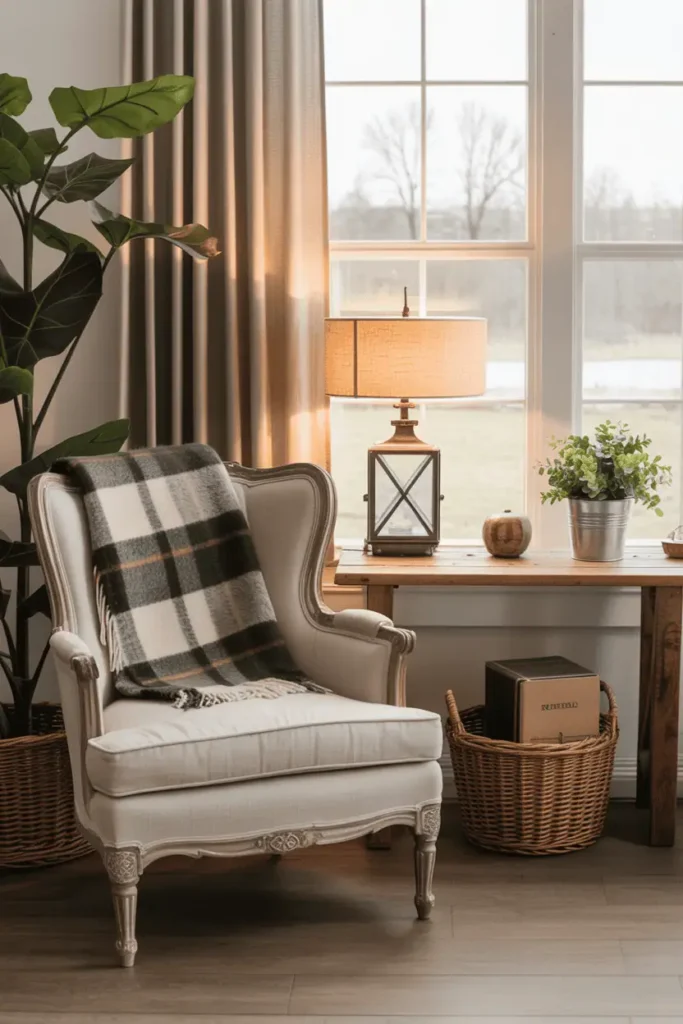 These materials add visual interest and prevent your room from feeling too soft. I believe in letting them age naturally. That patina is part of the farmhouse charm that makes your space authentic and lived-in.