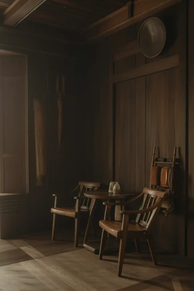 In these spaces, wood is heavy, grounding, and almost ceremonial.