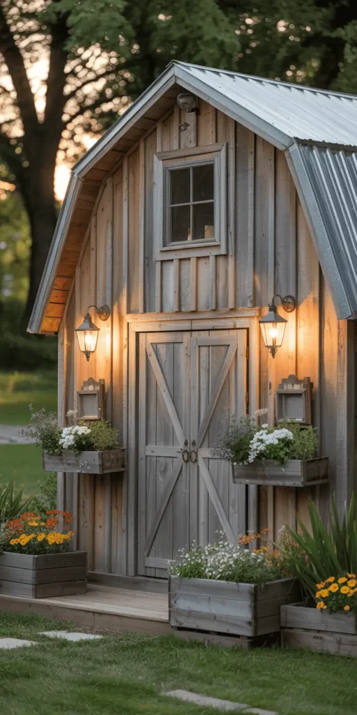 For those seeking a more rugged, nature-inspired design, rustic barn-style garden sheds are a captivating choice. Featuring weathered wood siding, exposed beams, and vintage hardware, these structures channel the rustic charm of rural settings. Nestled amidst vibrant flower beds or nestled in a secluded corner, these sheds create a charming, country-chic ambiance in any outdoor space.