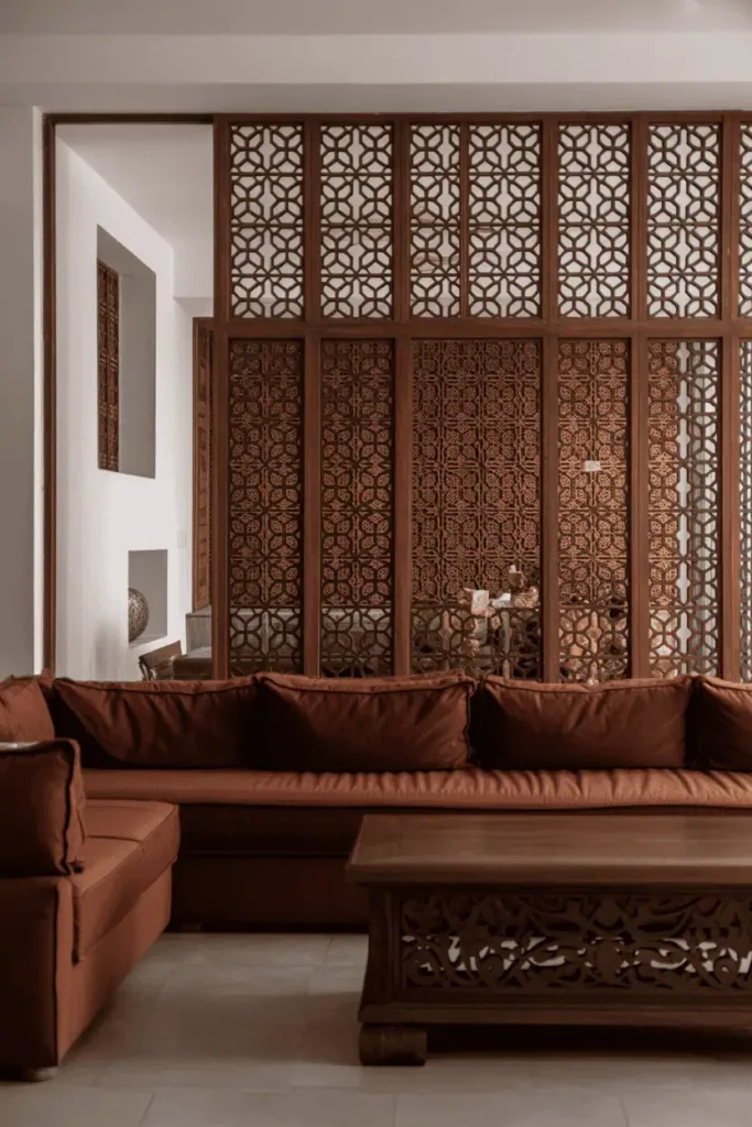 - 4 3. Dark Walnut Mashrabiya Screens as Room Dividers