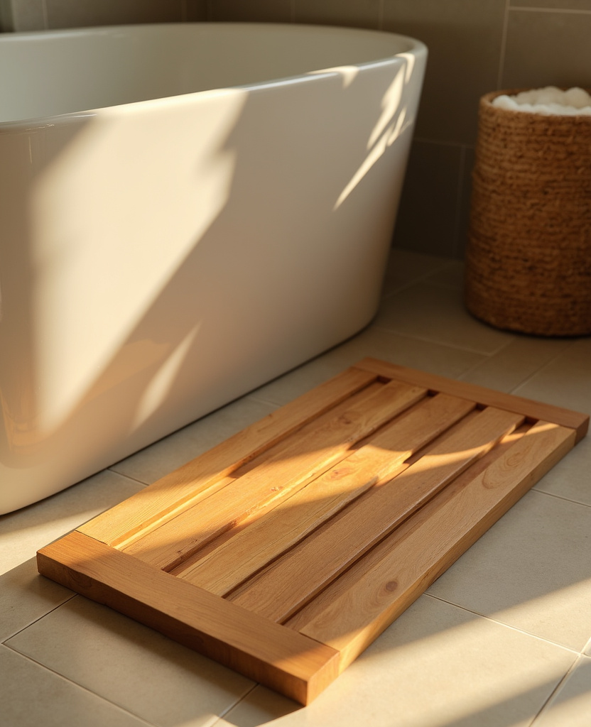 - 12 12. A Wooden Bath Mat for Natural Texture