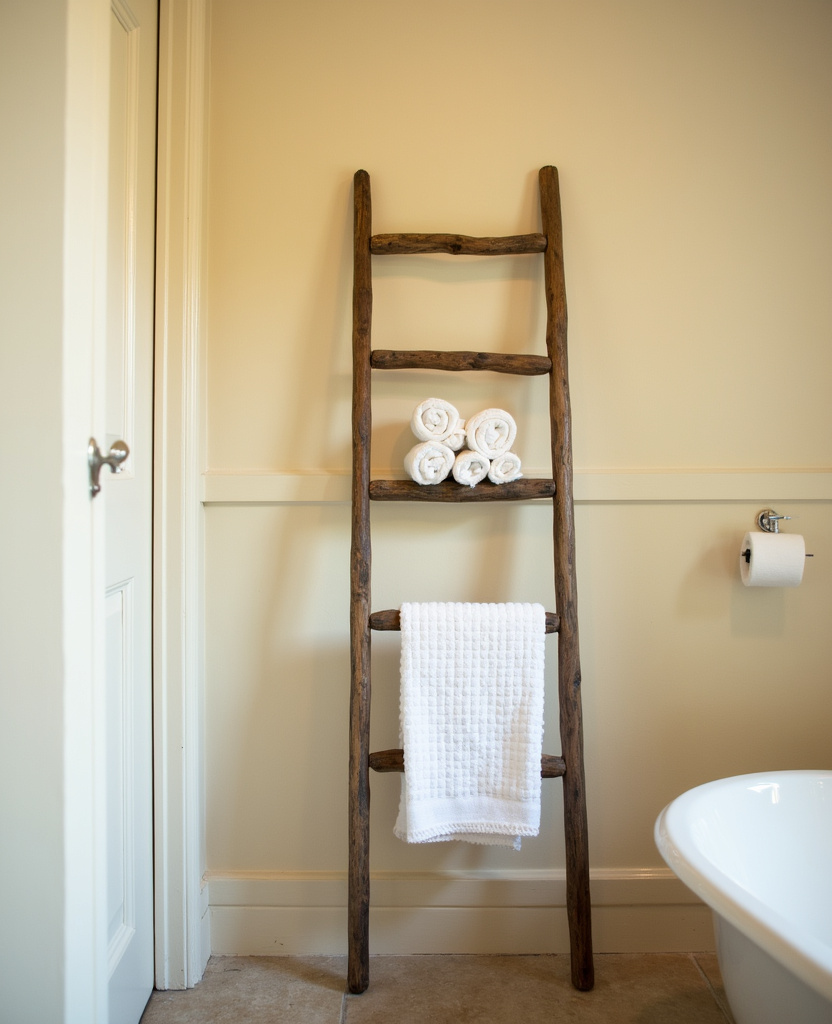 - 2 2. A Vintage Wooden Ladder for Towel Storage