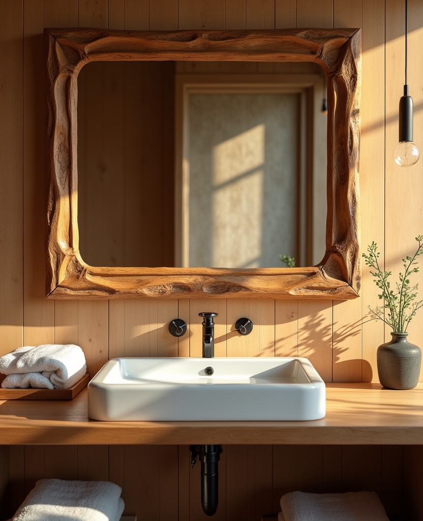 Your mirror is the focal point of your bathroom, so let it make a statement. A chunky wood frame in reclaimed pine or oak instantly elevates the space with rustic warmth.