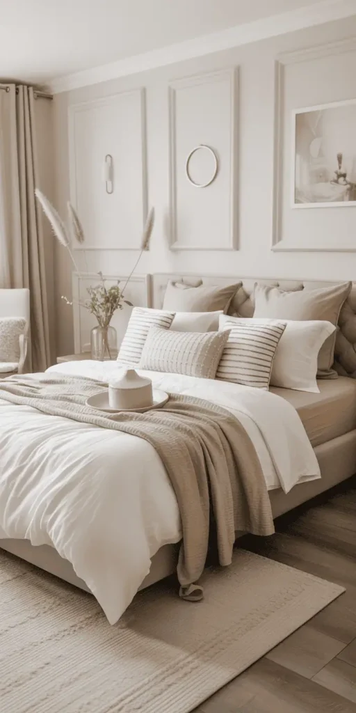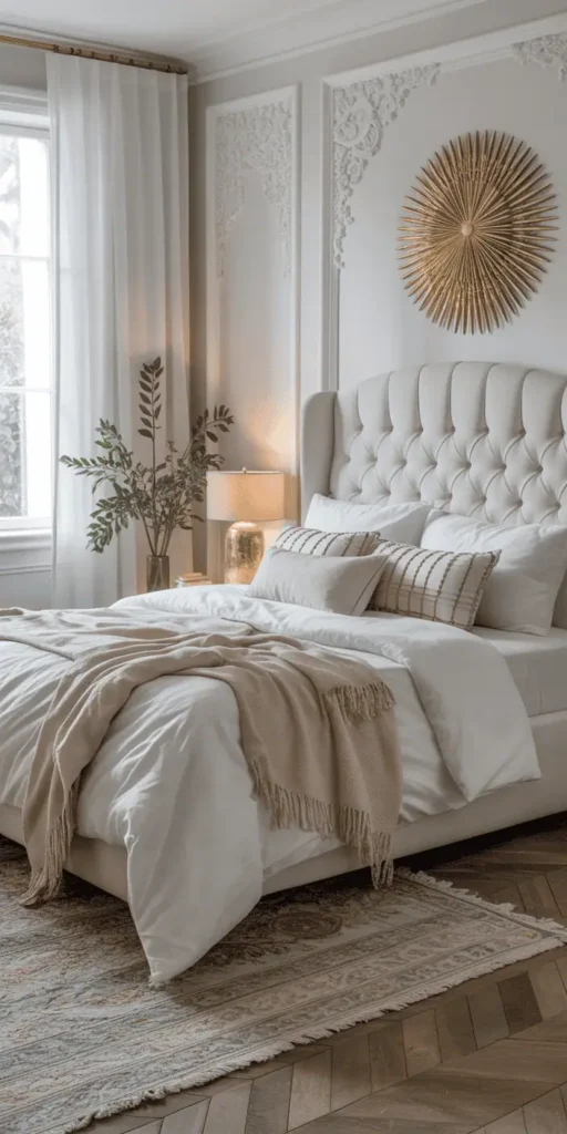 - Use white linen throws or gold embroidery pillows to blend comfort with curated style.
