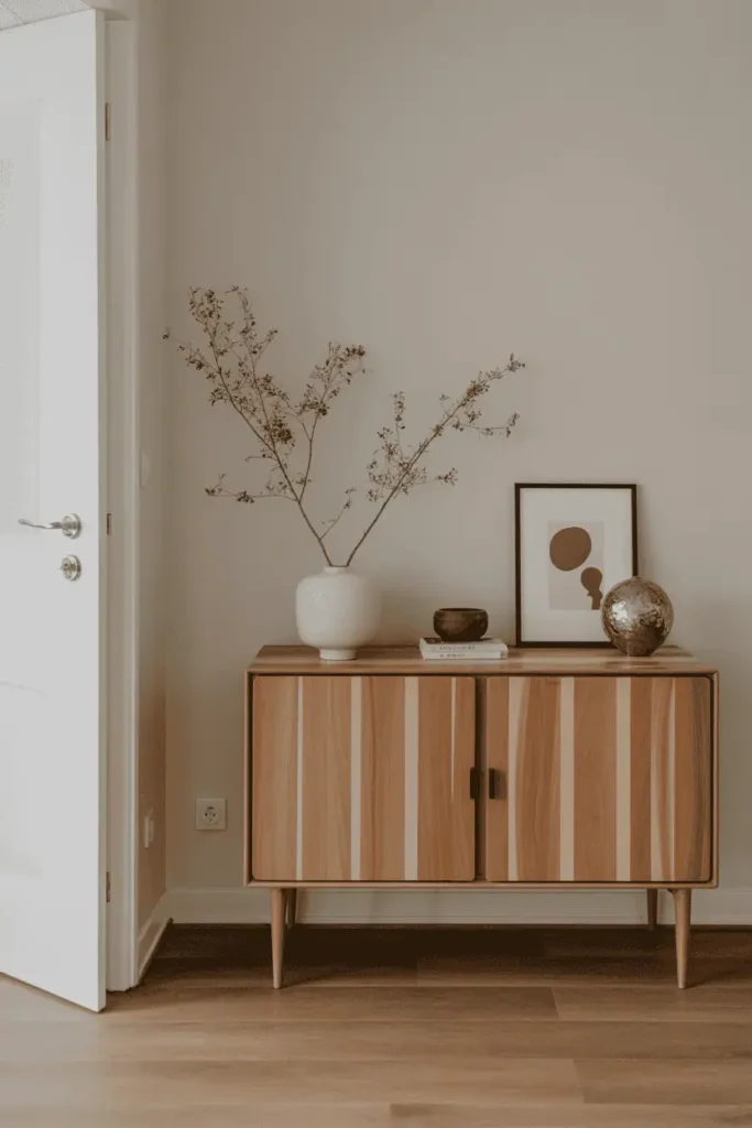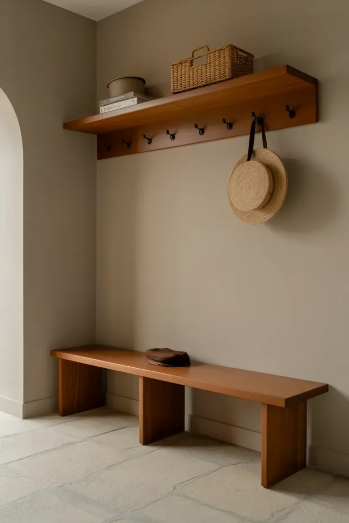 What matters most isn’t decoration. It’s proportion, placement, and restraint. A few well-chosen wooden elements can make an entryway feel intentional, even if it’s small or shared with another room. Too much, and it quickly feels cluttered. Too little, and it feels unfinished.